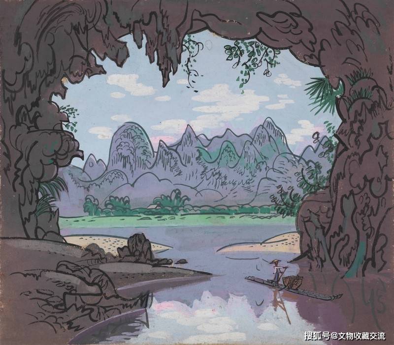 周令钊 漓江冠岩(创作小稿)1963 18.8×21.2cm 纸本粉彩 中央美术学院美术馆藏