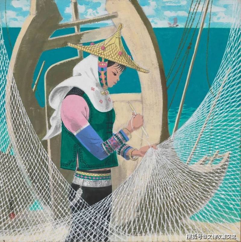 周令钊 织网(惠安组画)1984年 45×44.1cm 纸本丙烯 中央美术学院美术馆藏