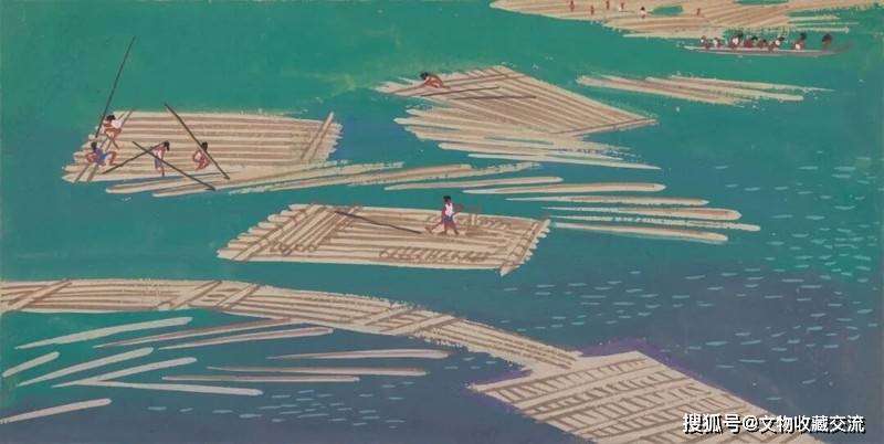 周令钊 放排 1963年 13.6×27cm 纸本粉彩 中央美术学院美术馆藏