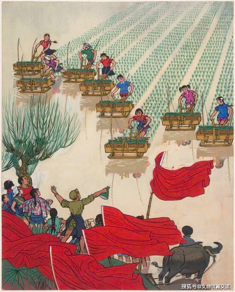 周令钊 插秧比赛 1961年73×59cm 纸本水粉 中央美术学院美术馆藏