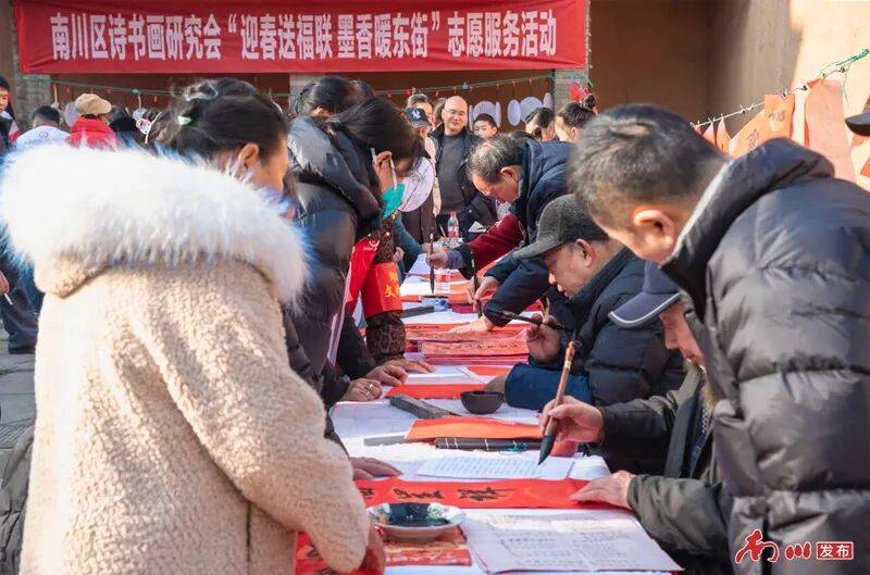 2月3日,南川区诗书画研究会“迎春送福联 墨香暖东街”志愿服务活动在东街开展。(特约通讯员 陈军 摄)