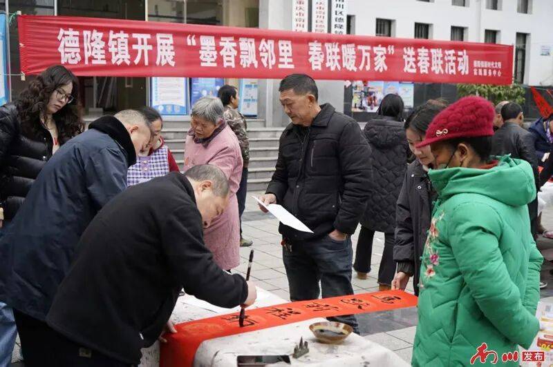 2月3日,德隆镇开展“墨香邻里 春联暖万家”迎新春送春联惠民活动。(通讯员 朱雨 摄)