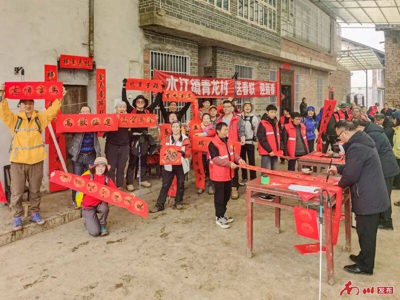2月1日,水江心连心志愿队和南川书法爱好者发起“我们一起陪您过个年”在水江镇青龙村举行,现场书写春联近500幅,免费送给村民。( 通讯员 彭应忠 摄)